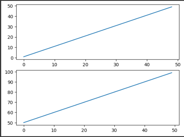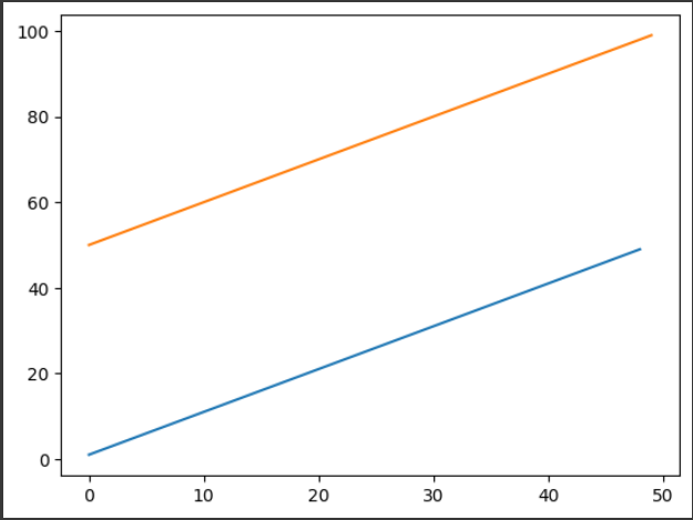 data2 = np.arange(50, 100) # 두 번째 데이터 생성 및 그래프 그리기