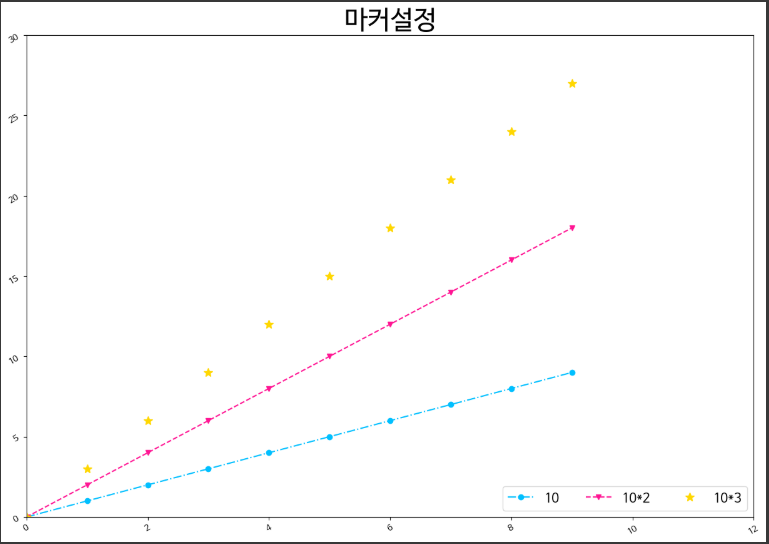 plt.title('마커설정', fontsize=30) # 그래프의 제목을 설정하고 글자 크기를 30포인트로